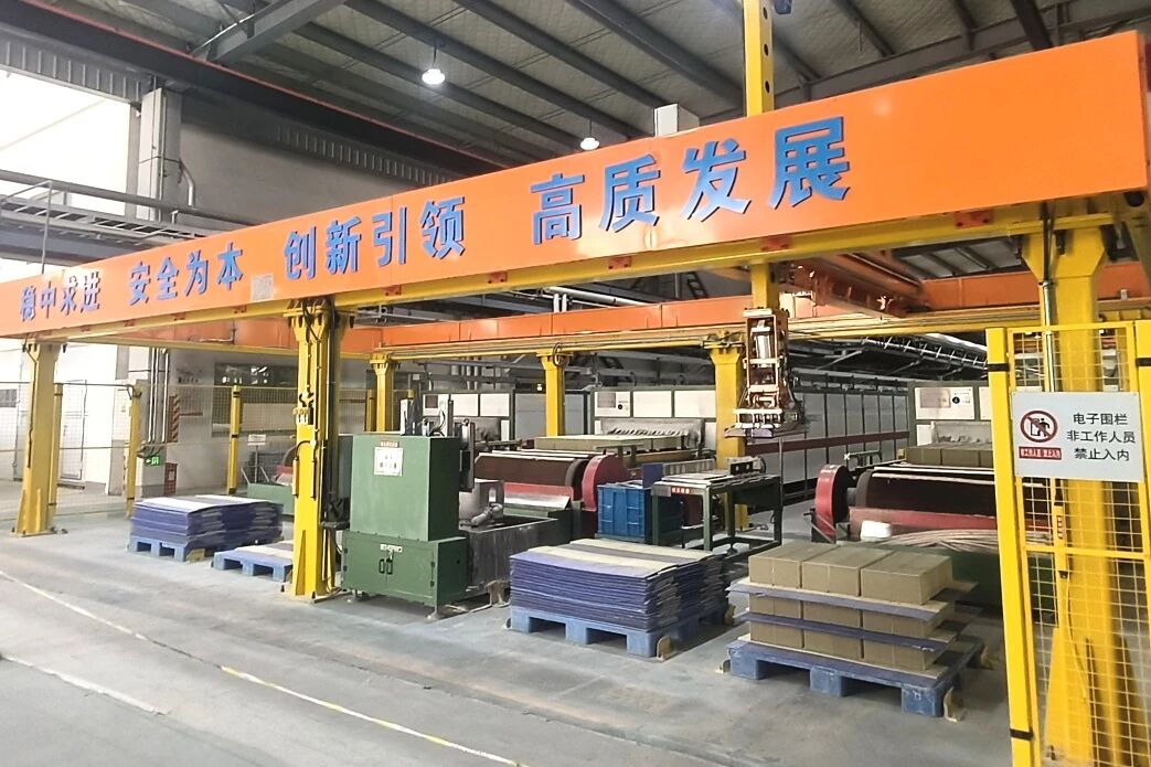 圖為 “源生”催化劑車間上下料自動化設備